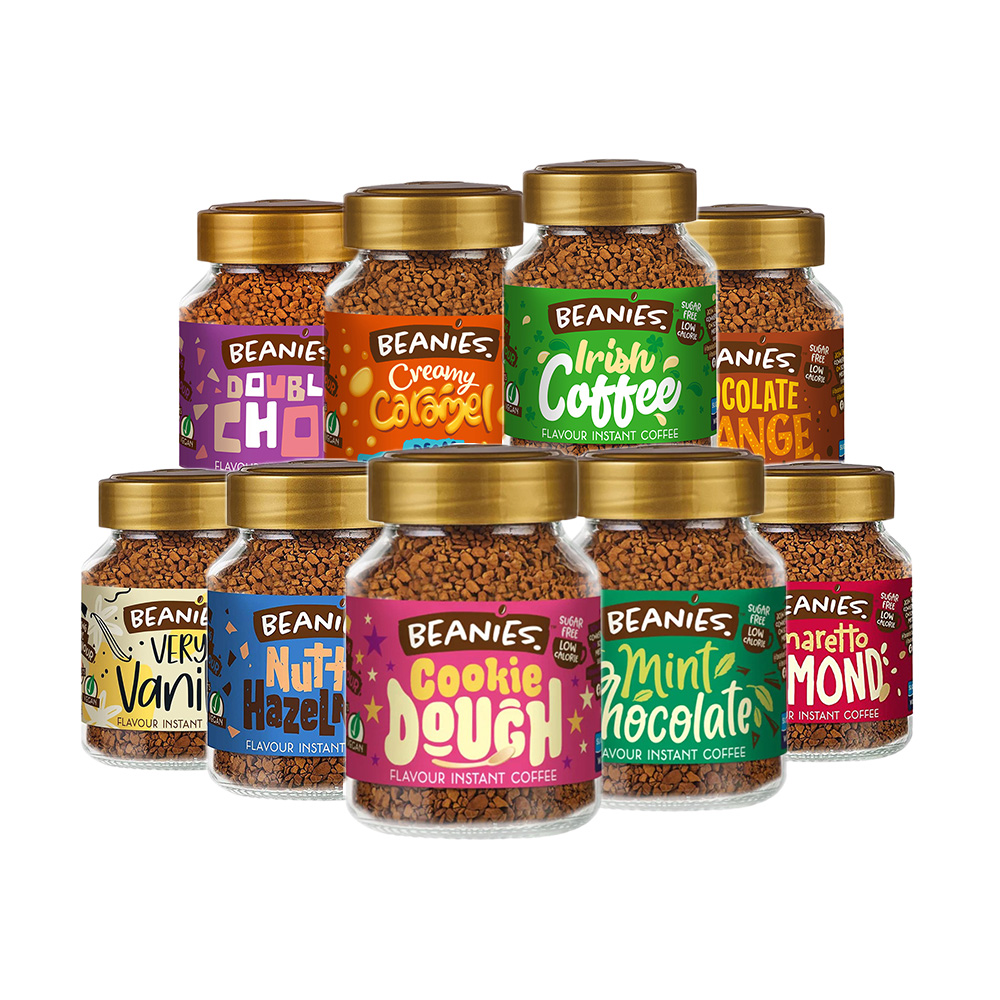 Beanies CoffeeAmaretto Almond, Chocolate Orange, Cookie Dough, Creamy Caramel, Double Choc, Irish, Mint Chocolate, Nutty Hazelnut, Very Vanilla
