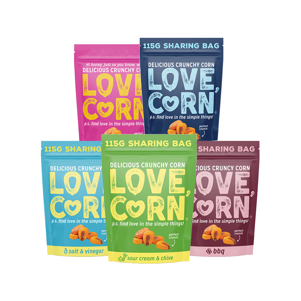 Love Corn CornSalt & Vinegar Crunchy, Sea Salt Crunchy, Smoked BBQ Crunchy, Sour Cream & Chive Crunchy, Sweet & Salty